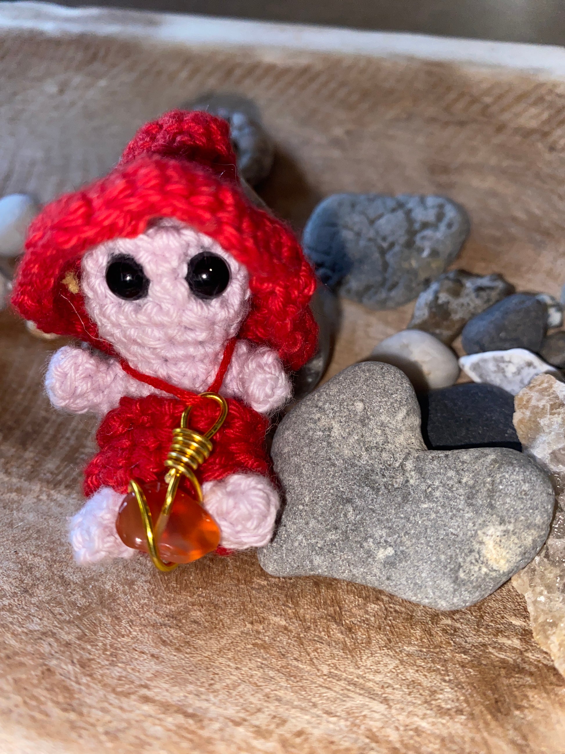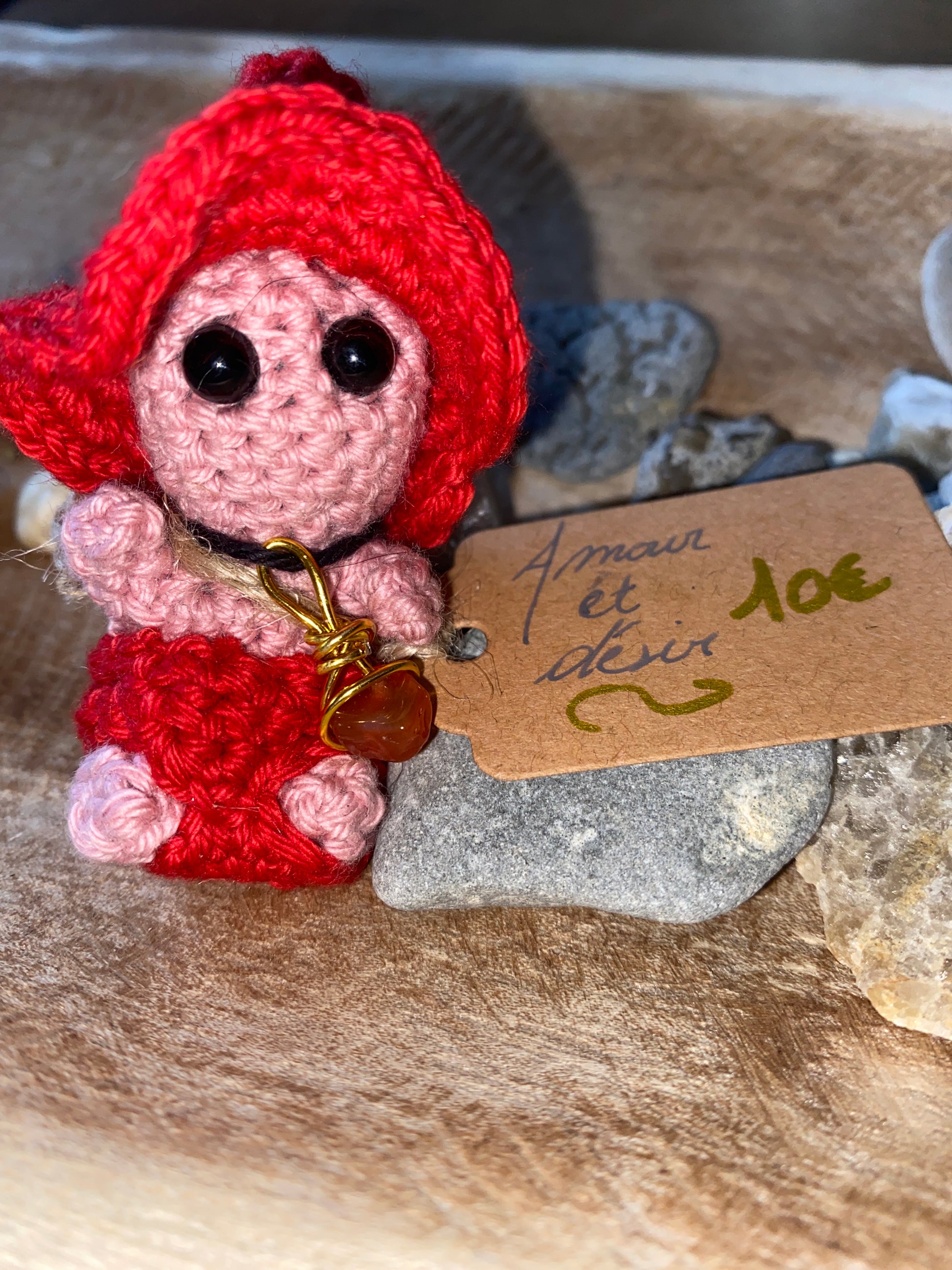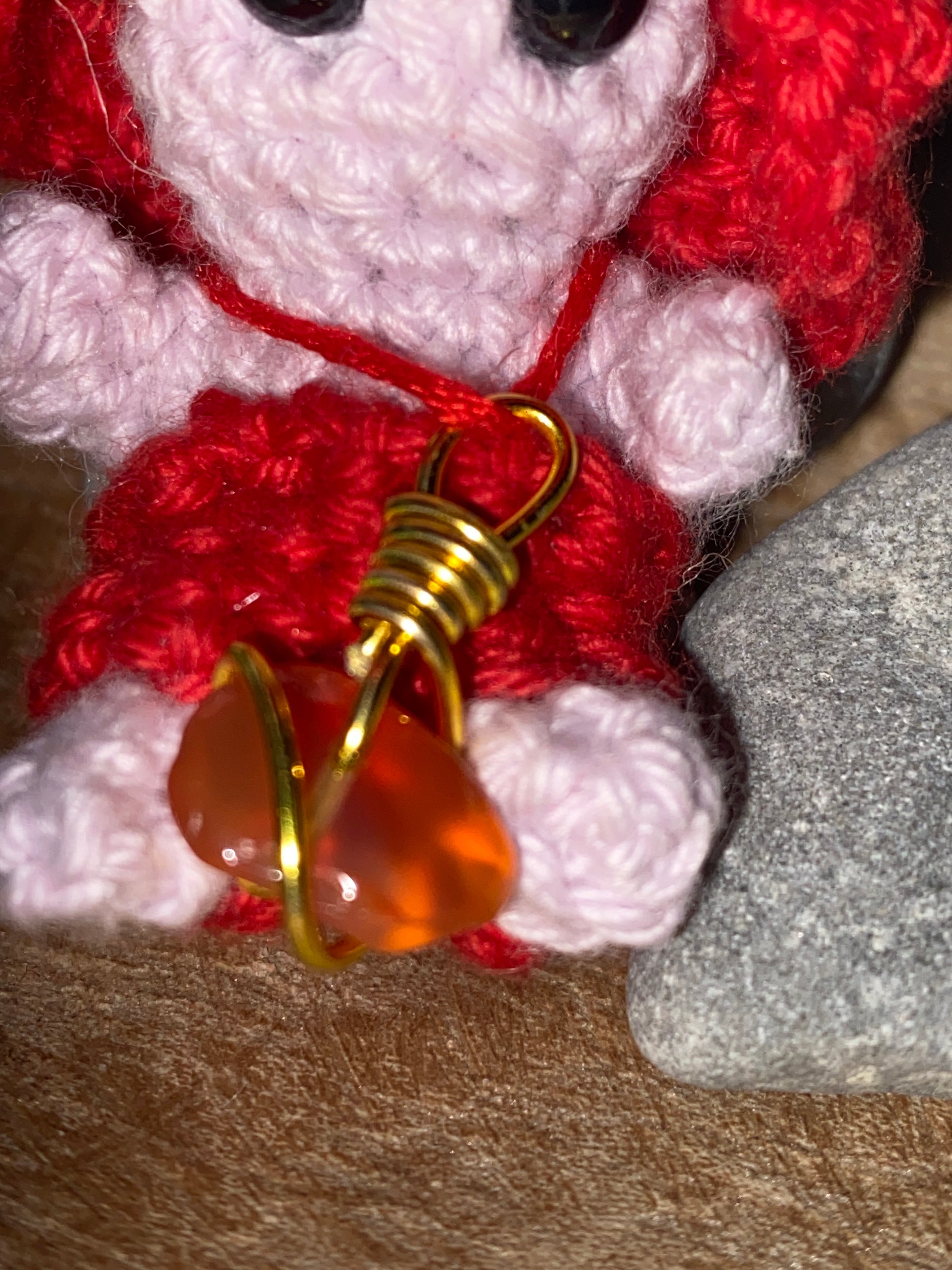 Avec sa peau rose pâle et son rouge vibrant, ce petit symbole rayonne passion, tendresse et énergie sensuelle. Sa cornaline évoque la chaleur du désir, l’élan amoureux et la confiance dans ses émotions.