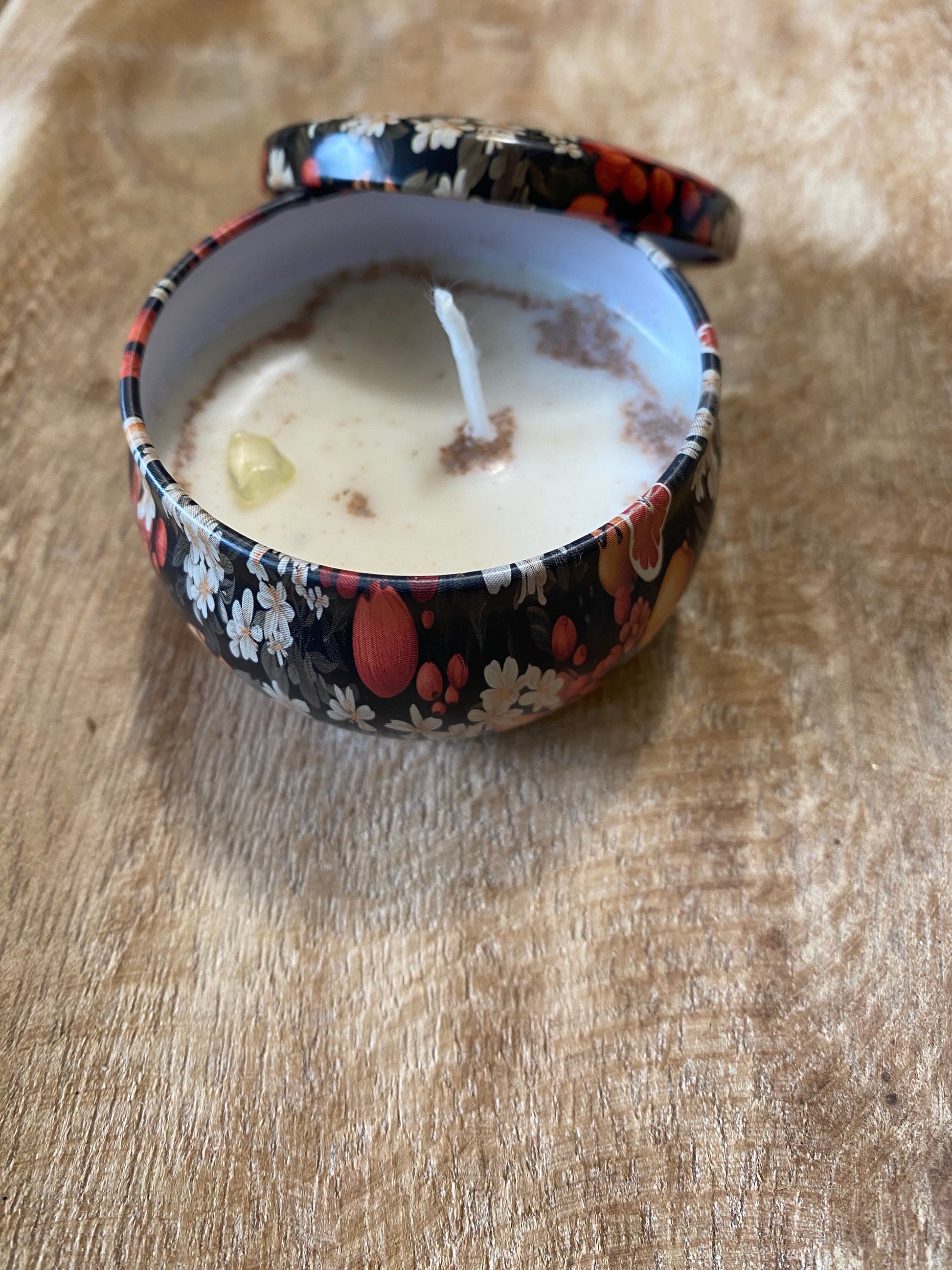 Précautions : Tenir hors de portée des enfants et des animaux. Ne jamais laisser la bougie allumée sans surveillance. Ne pas ingérer les herbes ou les chips de pierres.