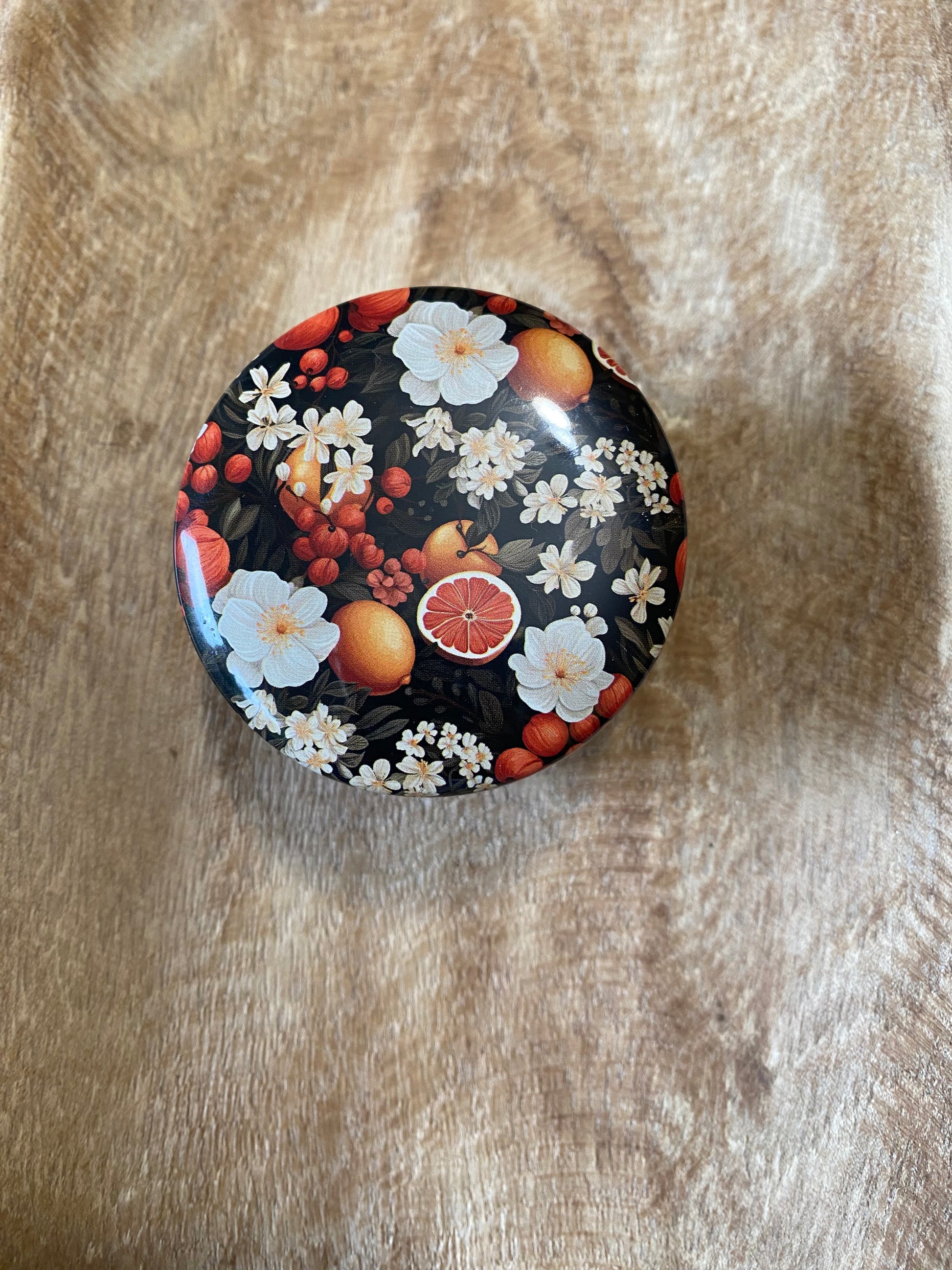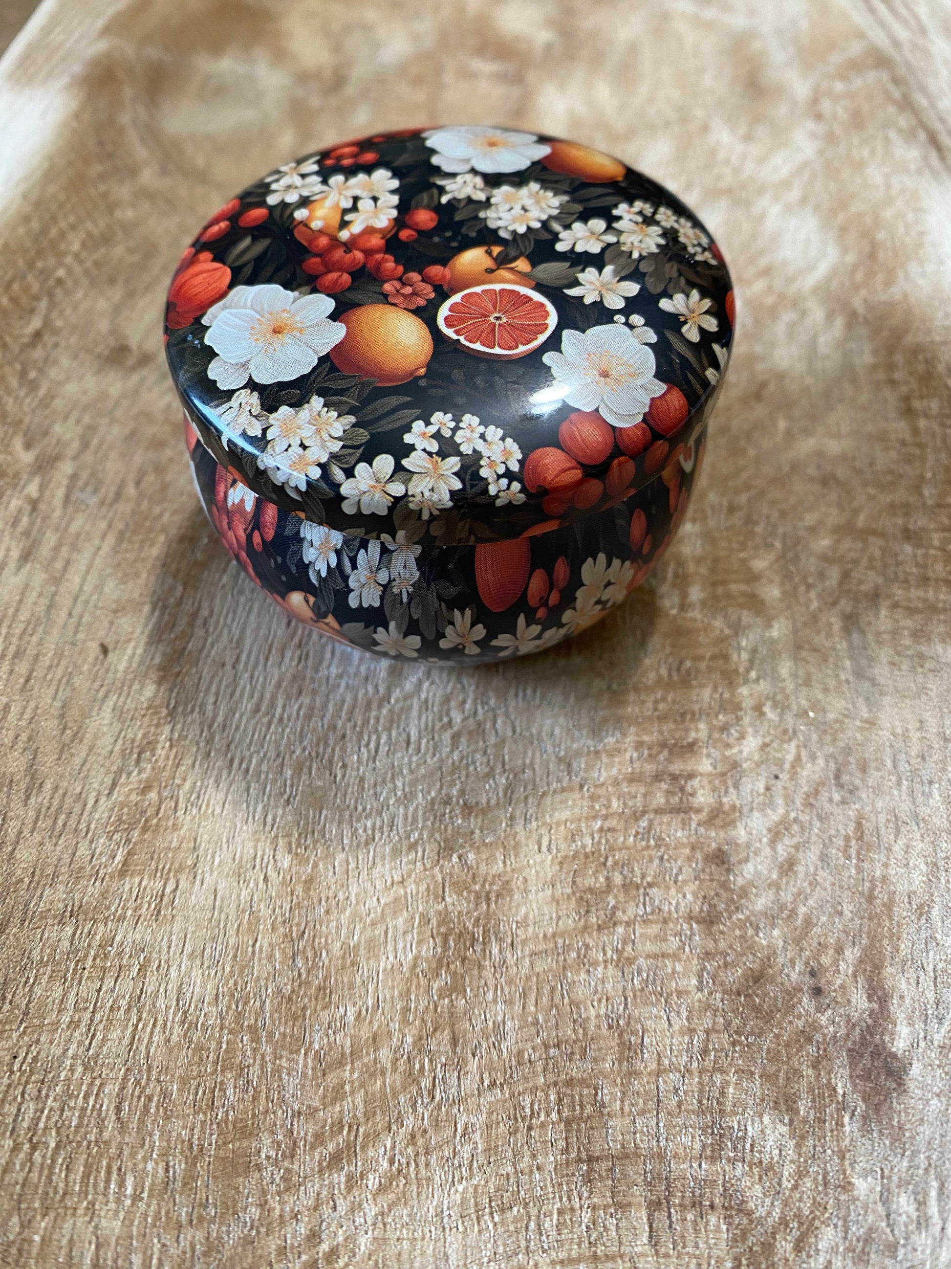 Chaleureuse et gourmande, cette bougie à l’orange douce et à la poudre de cannelle est ornée de chips de citrine.